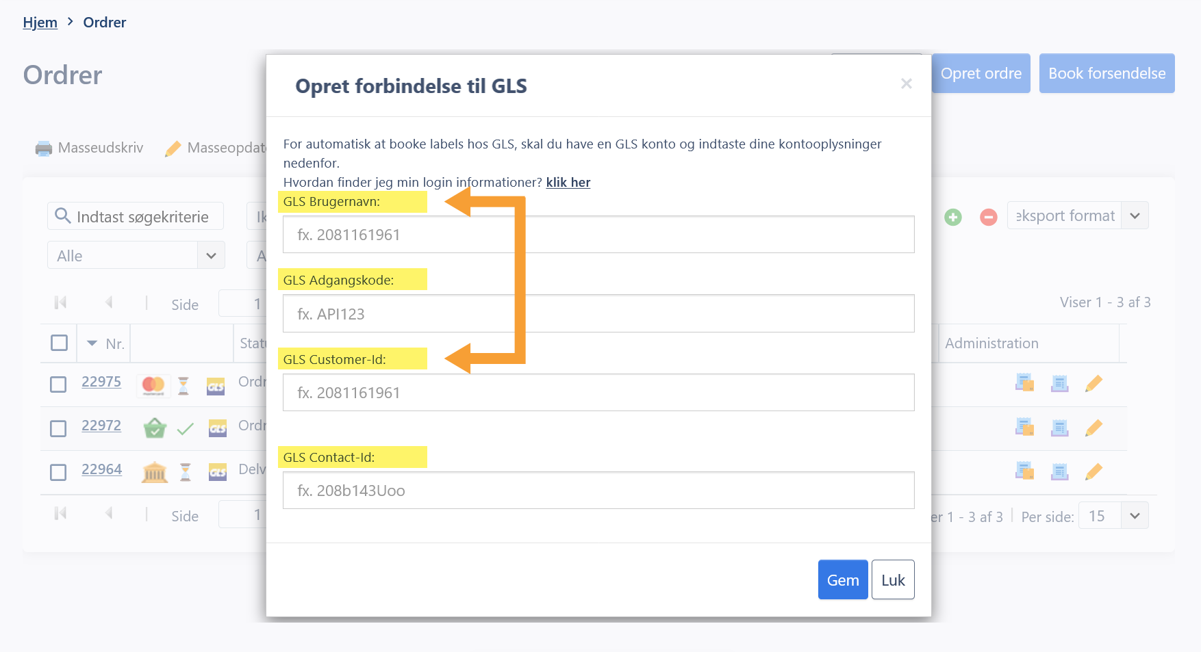Bemærk: Hvis du er i tvivl om de krævede GLS-oplysninger, bedes du kontakte GLS.